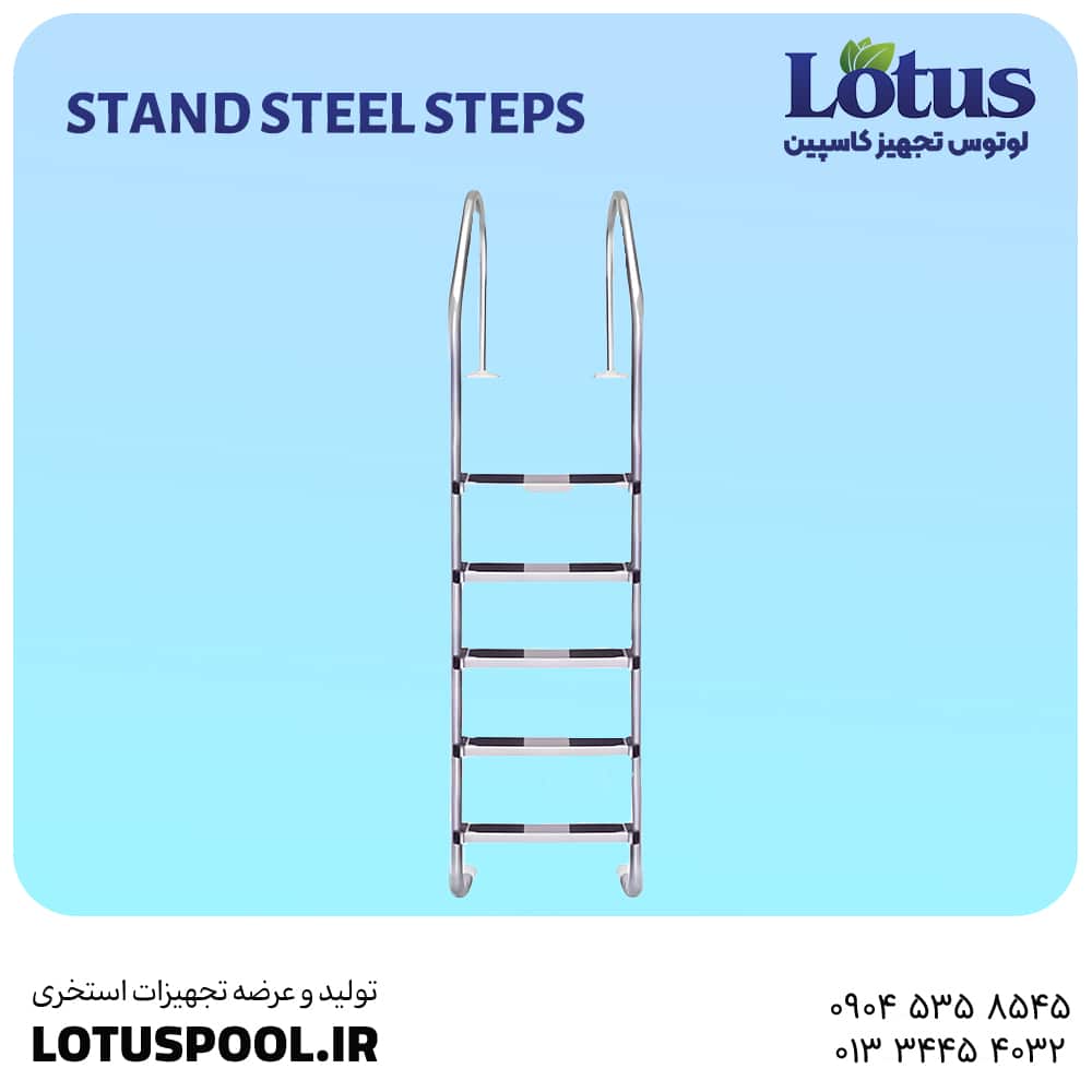 پله استخری طرح کلاب با کف پله استیل ضدزنگ | ایمنی، دوام و طراحی مدرن برای استخر
