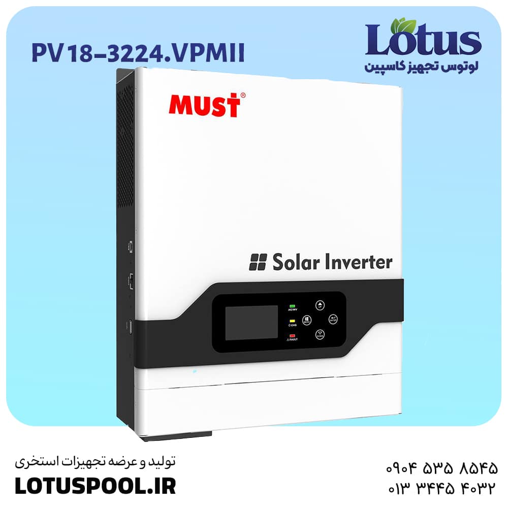 قدرت اینورتر: سه هزار و دویست VA/W که نشان‌دهنده قابلیت تأمین انرژی همزمان چندین دستگاه خانگی یا اداری است.